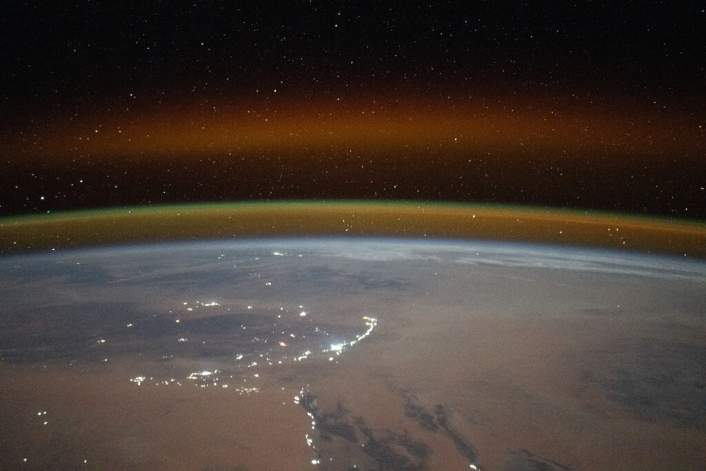 iss073e0824492 (Sept. 14, 2025) — In this oblique view from the International Space Station, city lights outline southern Japan from Fukuoka (top right) to Tokyo (bottom right) with a red-yellow airglow blanketing Earth’s horizon. This natural glow is produced when solar ultraviolet radiation excites oxygen molecules in the upper atmosphere during the day, which then release that energy as visible light at night. The orbital outpost was soaring 261 miles above the East China Sea at approximately 1:45 a.m. local time when this photograph was taken.iss072e574663 (January 29, 2025) — The Earth appears green due to the Aurora Australis, while the Milky Way rises over the horizon. This long exposure image was captured while the International Space Station was orbiting over the southern Pacific.iss073e0824130 (Sept. 14, 2025) — The Korean Peninsula—highlighted by Seoul, South Korea (bottom left)—and Northeast China—illuminated by the Beijing Municipality (top left)—are pictured from the International Space Station as it orbited 262 miles above Asia at approximately 12:42 a.m. local time.iss073e0824280 (Sept. 14, 2025) — The well-lit border (center) between South Korea and the less-illuminated North Korea is framed by the moonlit Sea of Japan (bottom) and the Yellow Sea (top), which is dotted with the bright lights of fishing boats. These lights are used to attract nocturnal fish, including anchovies, mackerel, and squid. The International Space Station was orbiting 262 miles above the Bohai Sea at approximately 12:43 a.m. local time when this photograph was taken.iss073e0780028 (Sept. 2, 2025) — A faint airglow blankets Earth’s horizon in this photograph taken from the International Space Station as it orbited 259 miles above the Pacific Ocean between Hawaii and California. This natural glow is produced when solar ultraviolet radiation excites oxygen molecules in the upper atmosphere during the day, which then release that energy as visible light at night.iss073e0816985 (Sept. 27, 2025) — Bright lightning storms illuminate the cloudy landscape of western Africa in this image captured from the International Space Station. A soft yellow-green atmospheric glow, created by atoms and molecules releasing energy absorbed from solar radiation earlier in the day, blankets Earth’s horizon. The orbital outpost was soaring 260 miles above the Atlantic coast of Ghana at approximately 11:04 p.m. local time when this photograph was taken.iss073e1198938 (Nov. 28, 2025) — A yellow-red airglow blankets Earth’s horizon as village lights dot the Saharan landscape of Algeria in this photograph taken at approximately 8:50 p.m. local time from the International Space Station as it orbited 261 miles above north Africa.iss073e0820756 (Sept. 14, 2025) — The densely urbanized region surrounding the Bohai Sea (center) on China’s east coast includes several major metropolitan areas, from Beijing (left center) to Changchun (top right), and Seoul, South Korea (far right). A yellow-green airglow blankets Earth’s horizon in this image captured from the International Space Station as it orbited 263 miles above the surface at approximately 11:06 p.m. local time.iss073e0817052 (Sept. 27, 2025) — Warm, diffuse city lights and bright lightning storms illuminate the cloudy nighttime landscape of western Africa in this image captured from the International Space Station. A soft yellow-green atmospheric glow, created by atoms and molecules releasing energy absorbed from solar radiation earlier in the day, blankets Earth’s horizon. The orbital outpost was soaring 260 miles above the Atlantic Ocean at approximately 11:05 p.m. local time when this photograph was taken.These false-color image taken by NASA’s Spitzer Space Telescope shows the ‘South Pillar’ region of the star-forming region called the Carina Nebula.The dusty side of the Sword of Orion is illuminated in this striking infrared image from the European Space Agency’s Hershel Space Observatory.This image from NASA’s Spitzer Space Telescope shows the Orion nebula, our closest massive star-making factory, 1,450 light-years from Earth. The nebula is close enough to appear to the naked eye as a fuzzy star in the sword of the constellation.This image from NASA’s Spitzer Space Telescope shows infant stars hatching in the head of the hunter constellation, Orion.NASA’s Hubble Space Telescope captures the chaotic activity atop a three-light-year-tall pillar of gas and dust that is being eaten away by the brilliant light from nearby bright stars in a tempestuous stellar nursery called the Carina Nebula.These false-color image taken by NASA’s Spitzer Space Telescope shows the ‘South Pillar’ region of the star-forming region called the Carina Nebula.CAPE CANAVERAL, Fla. – Twin columns light the night sky as space shuttle Endeavour hurtles into space on the STS-126 mission. Liftoff was on time at 7:55 p.m. EST. STS-126 is the 124th space shuttle flight and the 27th flight to the International Space Station. The mission will feature four spacewalks and work that will prepare the space station to house six crew members for long-duration missions. Photo credit: NASA/Sandra Joseph-Kevin O’ConnellKENNEDY SPACE CENTER, FLA. -Space Shuttle Endeavour roars into the black sky on columns of fire as it lifts off Launch Pad 39A on mission STS-113. Liftoff occurred ontime at 7:49:47 p.m. EST. The launch is the 19th for Endeavour, and the 112th flight in the Shuttle program. Mission STS-113 is the 16th assembly flight to the International Space Station, carrying another structure for the Station, the P1 integrated truss. Also onboard are the Expedition 6 crew, who will replace Expedition 5. Endeavour is scheduled to land at KSC after an 11-day journey. [Photo by Scott Andrews]